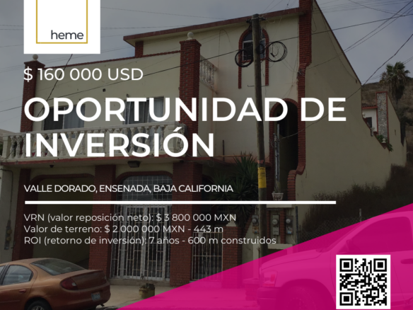 Oportunidad de inversión en Valle Dorado, Ensenada. Extenso terreno con casa y departamentos para renta por debajo de su valor comercial.